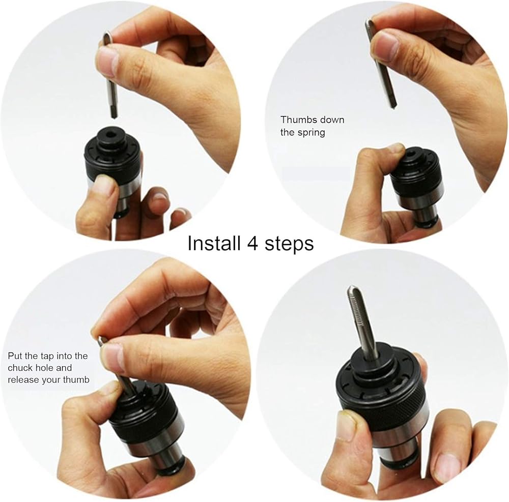 2. Put the tap into the chuck hole and release your thumb