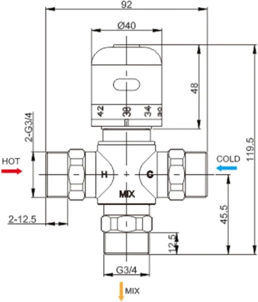 1PCS G3/4"(DN20) Thermostatic Valve Thermostatic Mixing Valve Solar Shower Brass Thermostatic Valve Solar Pipe Valve