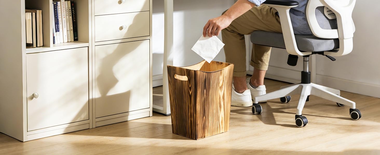 【Crafted from Natural Pine Wood】Made from quality pine wood, each wastebasket features a warm wood grain texture and natural variations, adding a refined and elegant touch to your space while ensuring durability for everyday use