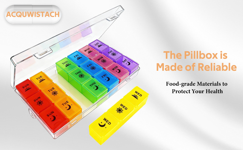 Premium Material: Constructed from high-quality, non-toxic, and BPA-free PP plastic, this medication organizer is ultra-safe for daily use. The durable material is easy to clean, prevents residue absorption, and ensures safe storage for all your pills and vitamins.