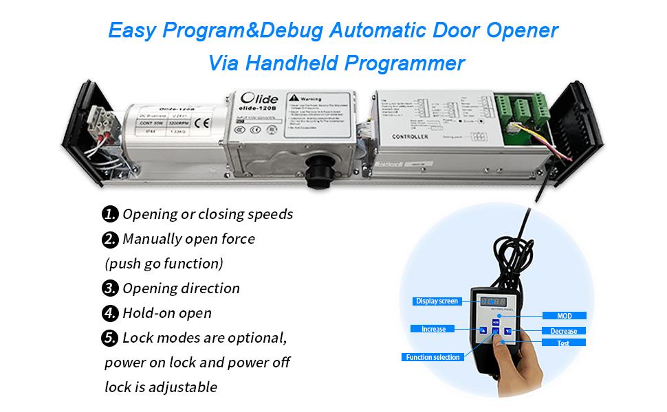 [Easy Parameter Adjustment]Lots of parameters such as manually push force can be adjusted on closing force by handheld programmer of ada automatic swing door