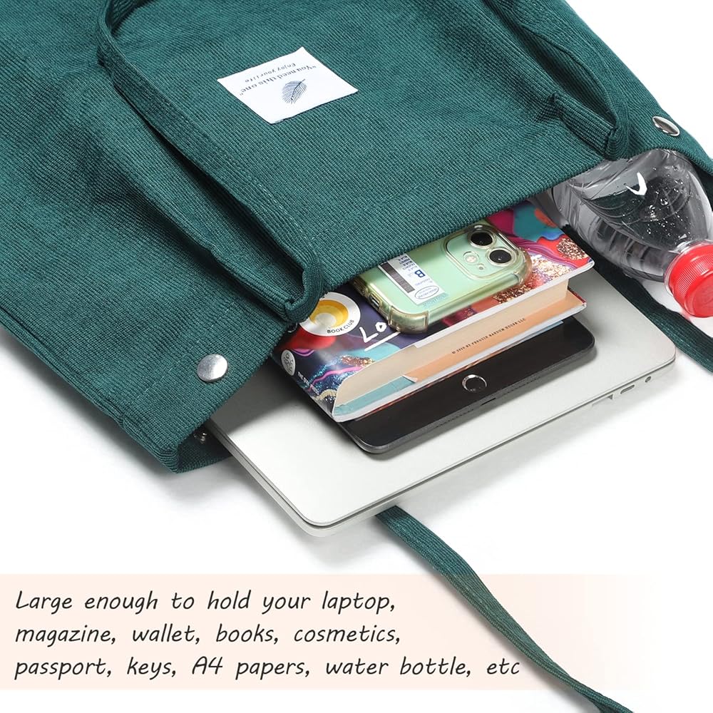 TOTES BAG STRUCTURE: 1 main compartment, 2 internal open slot pockets, the little pocket is super useful, perfect for cell phone, card, key, or small wallet. Our corduroy shoulder bags is big enough to hold for wallet, books, cosmetics, umbrella