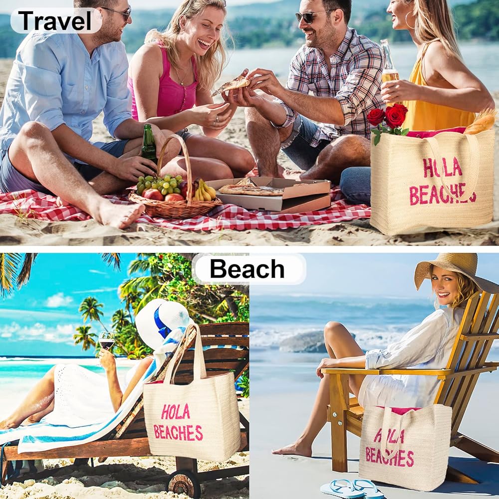 Our stylish and multipurpose beach bag tote can effortlessly double as a cruise bag, sports bag, or overnight bag, making it the perfect vacation travel beach bag or "weekend vibes" bag. It's lightweight and can even be used on flights as an oversized straw purse, perfect for summer travel!