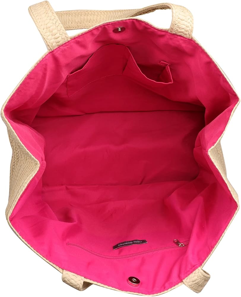 This large beach bag is 16 x 13 x 6 inches in size, with 9-inch handles for easy carrying. The interior is fully lined and matches the embroidery, creating a cohesive and stylish look. With three inner pockets, 2 open slip pockets. This beach bag with zipper pocket keeps your items safe. You can easily store your beach essentials such as your cellphone, sunglasses, and other travel must-haves.