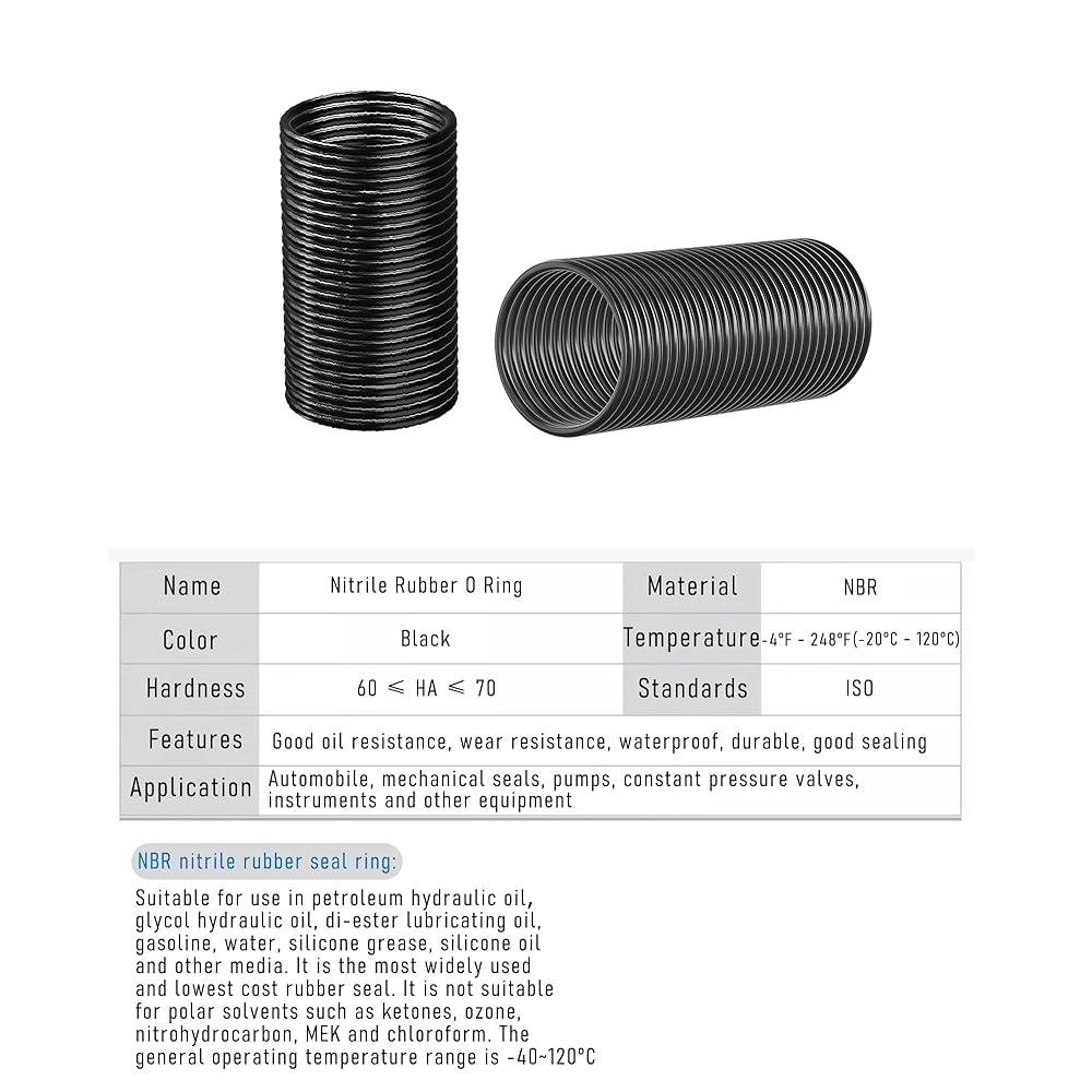 【MATERIAL】Made by premium nitrile rubber (NBR, Buna-N) material, water and oil resistance, heat resistant, good sealing, wear resistant, anti static. Durable and long service life.