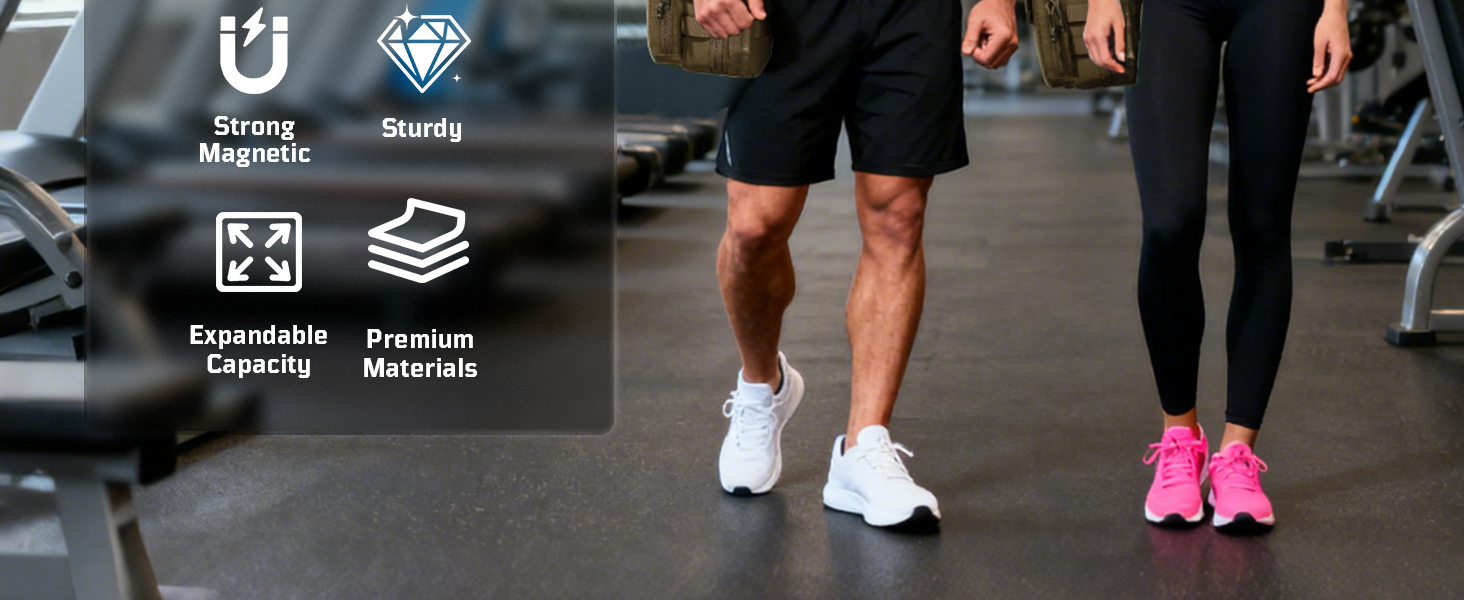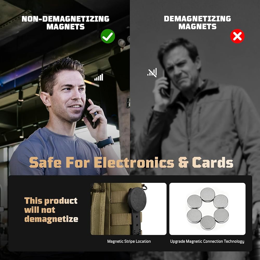 【Detachable & Safe Magnetic Clip】Securely attach your magnetic gym water bottle bag to any metal surface with our powerful yet safe magnetic clip. Uniquely designed with distance from the main compartment, it eliminates any risk of demagnetizing your phone or cards. Easily detach and reposition it on the side MOLLE webbing to switch between gym hang and crossbody carry in seconds.Tips: Please place the removable magnets in your bag.