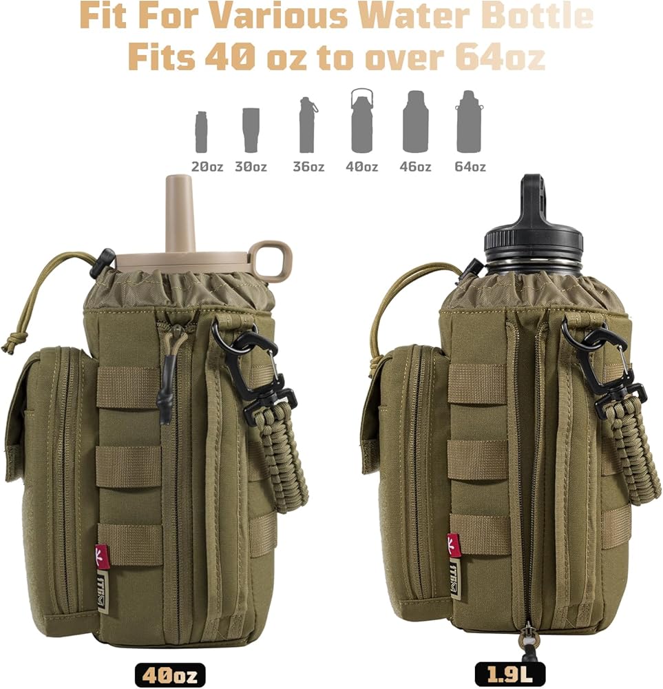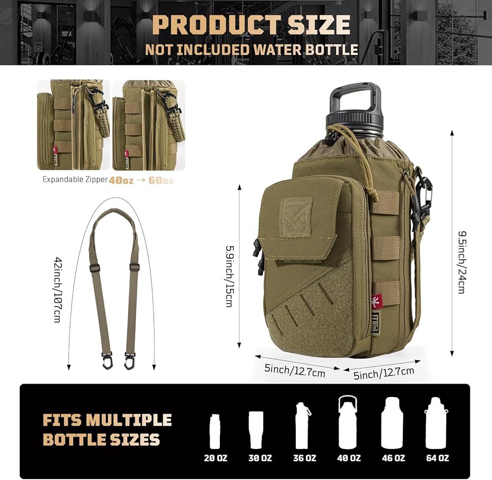 1TG Tactical Magnetic Gym Bag for Men,Magnetic Gym Water Bottle Bag with Phone Pockets&40 64oz Multiple Size, Water Bottle Holder with Adjustable Shoulder, Ideal for Fitness,Sports,Travel(Brown)