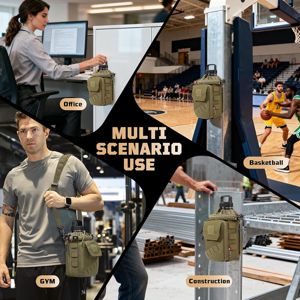 【Multiple Carrying Options】Engineered for ultimate comfort and flexibility. Includes a sturdy woven handle for grab-and-go, plus a long, adjustable tactical shoulder strap for crossbody wear. Whether you're in the gym, walking,travel,work or commuting, this water bottle crossbody bag offers a comfortable, hands-free solution for every scenario.