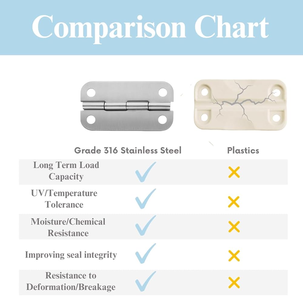 SUPERIOR STRENGTH & LONGEVITY - Engineered to outlast original plastic hinges by years. The robust stainless steel construction handles repeated opening and closing cycles while maintaining smooth operation. Resists cracking, breaking, and weather damage that commonly affects plastic components.