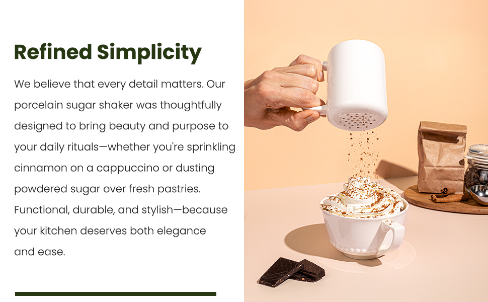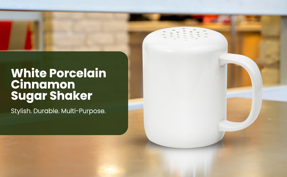 White Cinnamon Sugar Shaker Dispenser – Coffee Station Accessories & Bar Essentials – Porcelain Powdered Sugar & Pumpkin Spice Duster for Chocolate, Nutmeg & More – Gift for Bakers and Latte Lovers