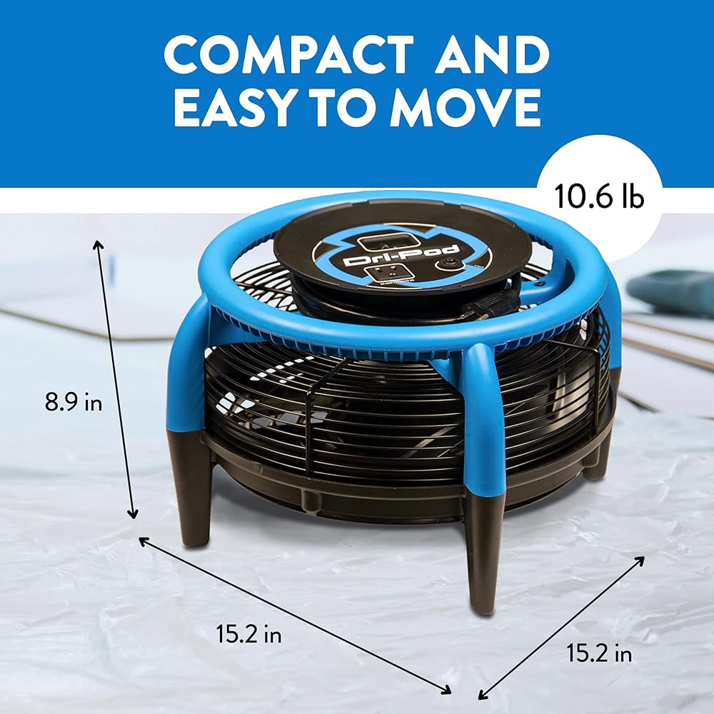 Use what the pros use – the Dri-Pod's unique patented design dries floors and carpets 8 times faster than standard fans using its omni-directional 360º drying technology. Dry floors and inside cabinets, plus circulate air. Its unique airflow delivery system hugs surfaces to ventilate rooms without creating a draft. Uses just 1.1 amps of power so it's extremely energy efficient.