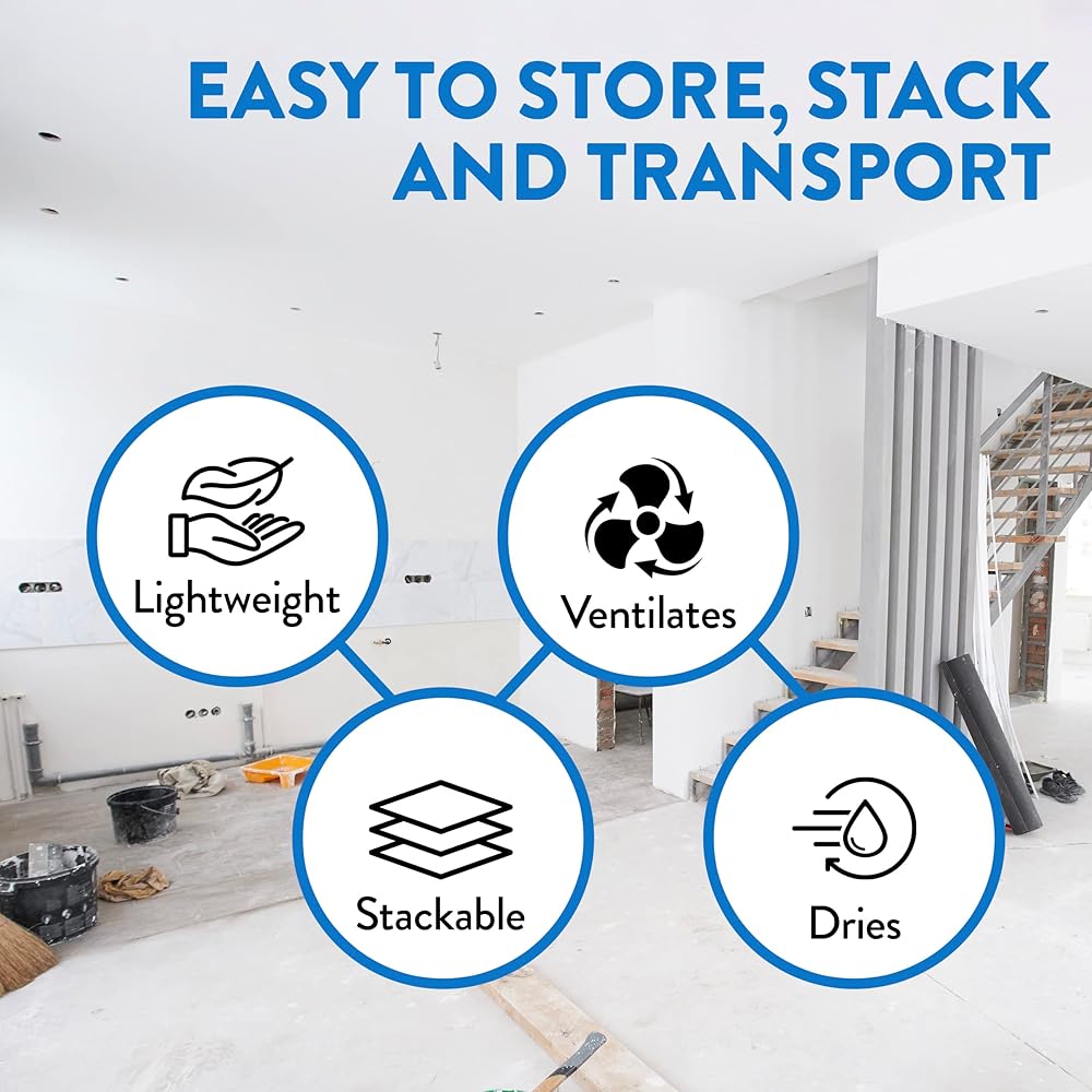 Lightweight, portable carpet drying fan is easy to store, stack and transport to job sites