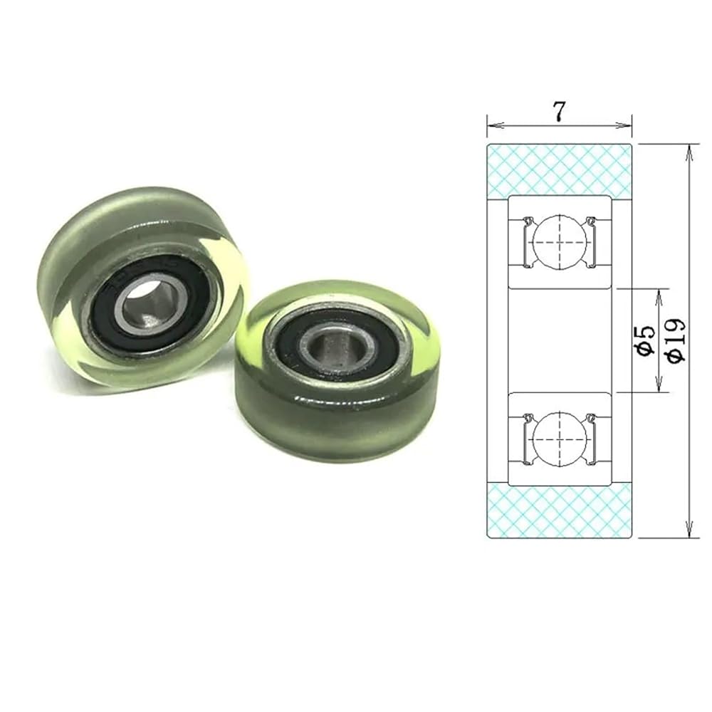 5x19x7mm PU 605RS Bearing Roller PU60519-7 OD 19mm 10pcs