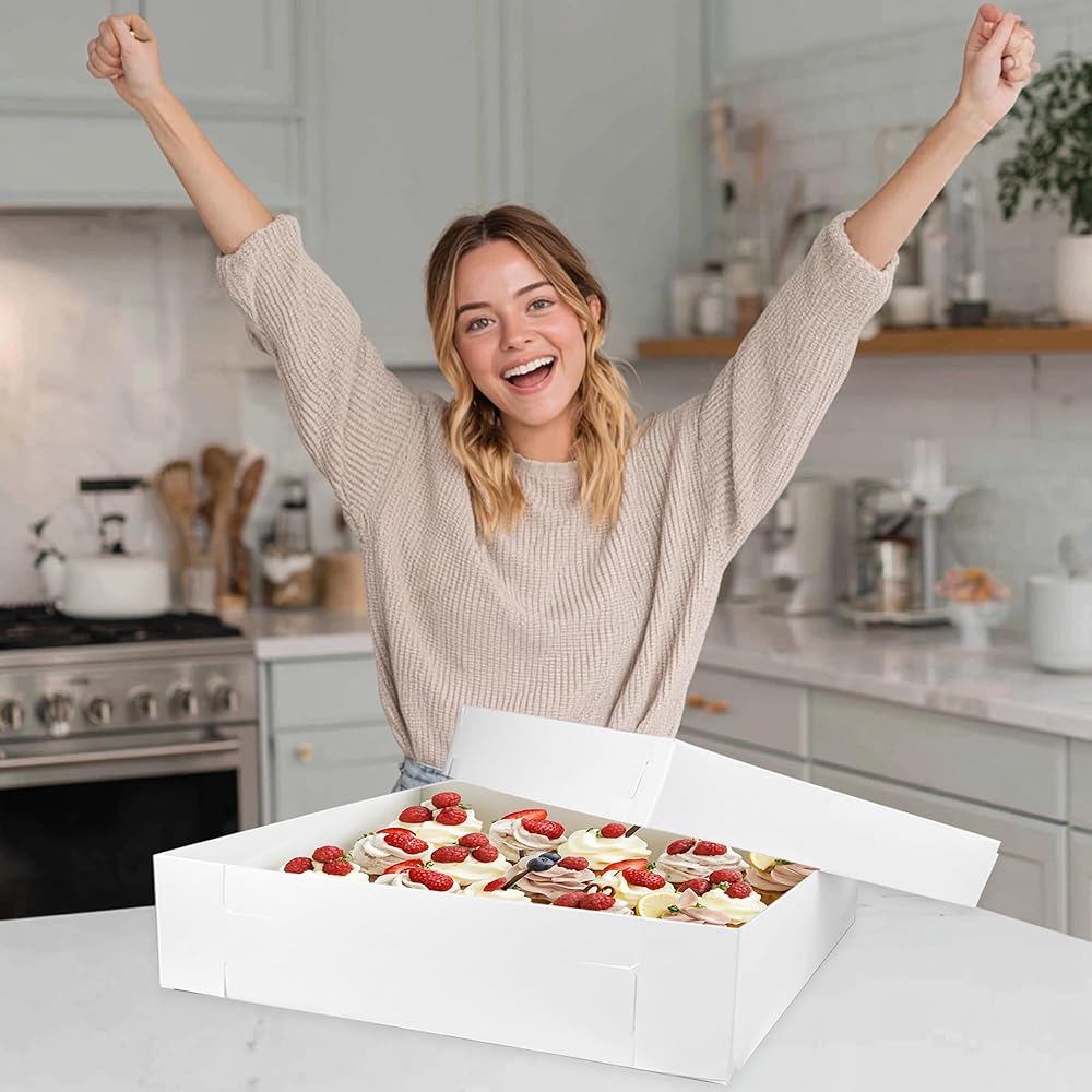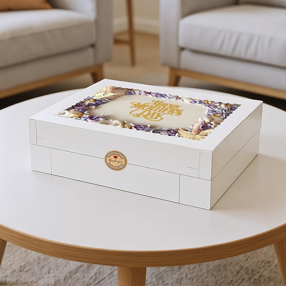 SIZE- These 14x14x4 inches white cake boxes are suitable for large cakes, desserts, pastries and baked goods