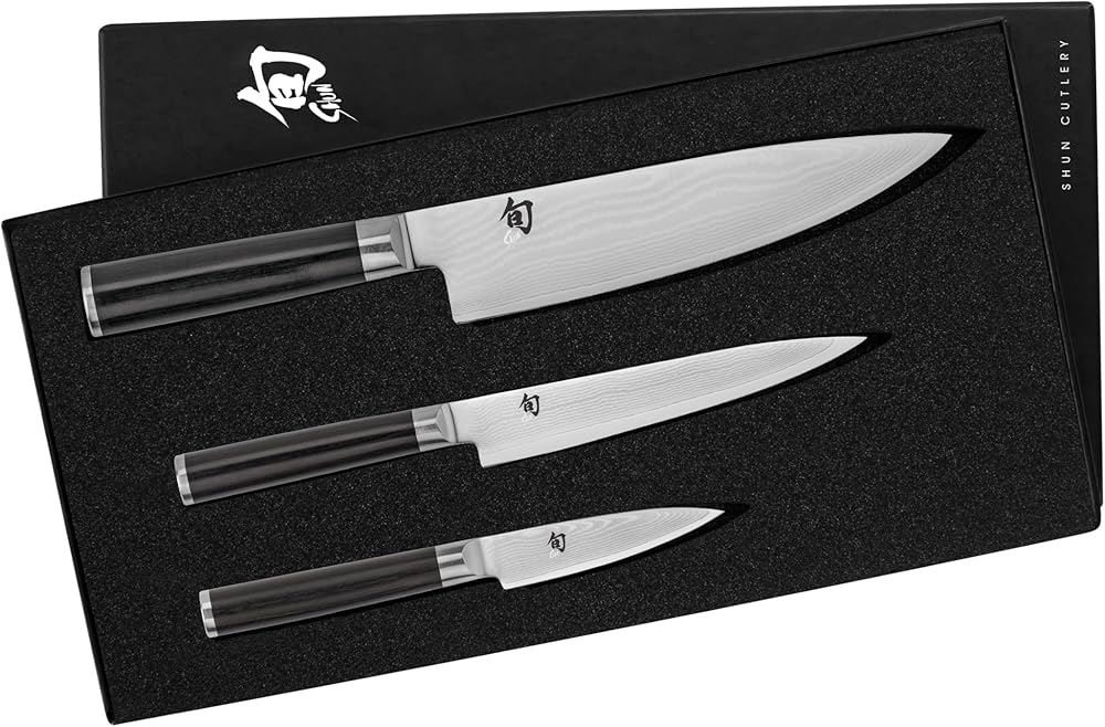 3 PIECE KNIFE SET: Featuring an 8-inch Chef's Knife, 3.5-inch Paring Knife and 6-inch Utility Knife, the Shun Classic 3-Piece Set is the perfect start to your cooking knife collection.