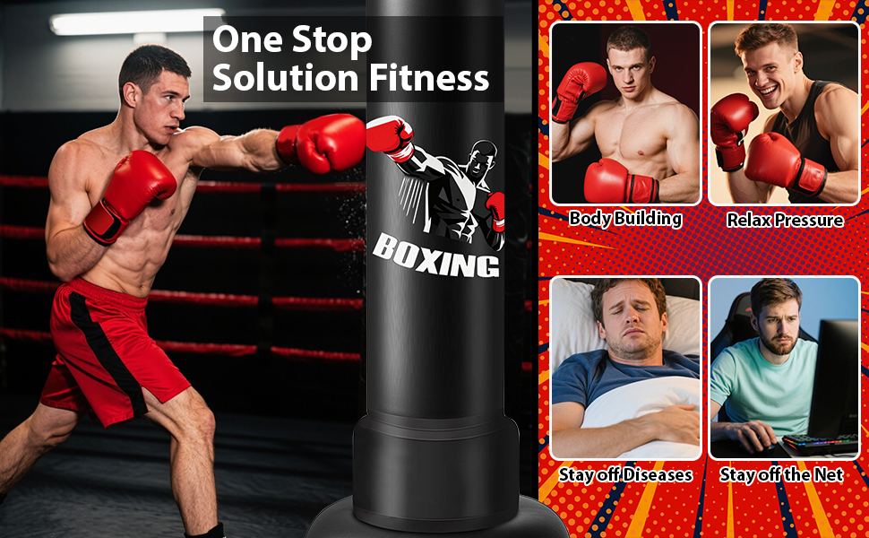 Amazing: The boxing bag built-in a three-air-chamber system, this freestanding punching bag will bounce back instantly after every hit,bringing you a perfect training experience.Kickboxing bag is good for body building, pressure release, get rid of Internet addiction and training Taekwondo, Boxing, Karate, Muay Thai Fitness.