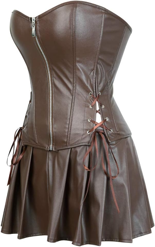 PACKAGE: 1 Faux Leather Corset Top + 1 Tutu Skirt + 1 G-string, Tutu Skirt is Separate, You Can Wear The Corset Top Singly or add The Tutu Skirt To Make it A Corset Dress