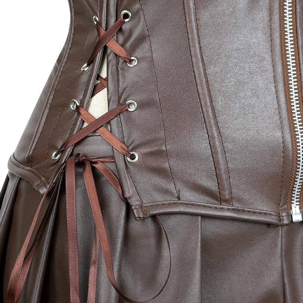 OCCASION: Perfect Faux Leather Corset For Steampunk-Themed Outfits, Burlesque, Halloween Costume, Photo Shot, Show, Stage Performance, Clubwear, Corset Costumes, Bedroom Lingerie Corset or Any Other Intimate Occasion