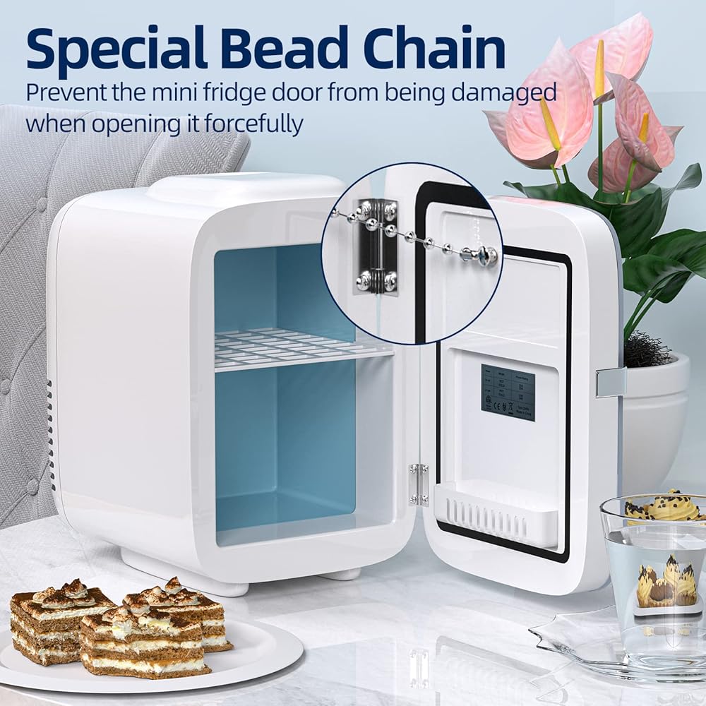 Mini Fridge for Skin Care, Portable Beauty Cooler and Warmer with Eraser Board Door and Bead Chain(4 Liter/6 Can),Personal AC/DC Refrigerator for Makeup, Food, Travel, Bedroom