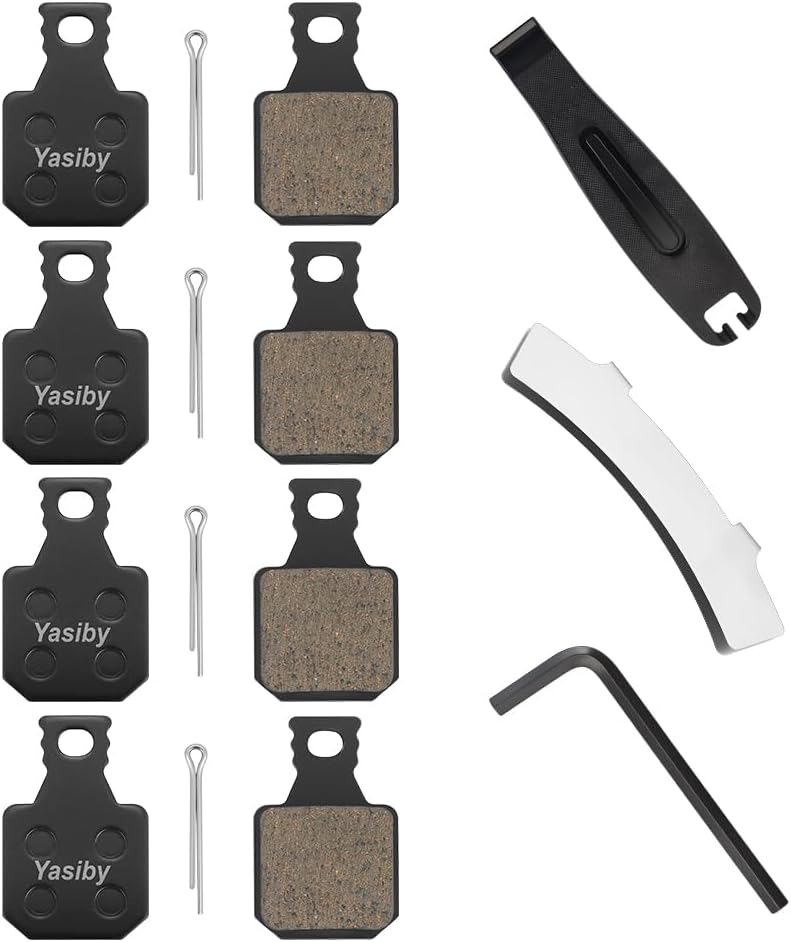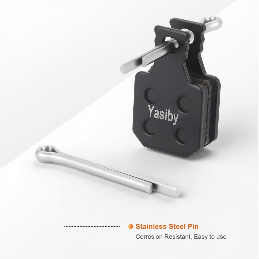 【Excellent Braking Performance】Yasiby semi-metallic disc brake pads are constructed with copper fiber, organic resin, and ceramic additives, offering superior thermal dissipation, wear resistance, braking power, and noise reduction. Equipped with stainless steel high-elasticity shrapnel and stainless steel pin, corrosion resistance and balanced rebound force, ensuring durable and safe long-term performance.