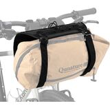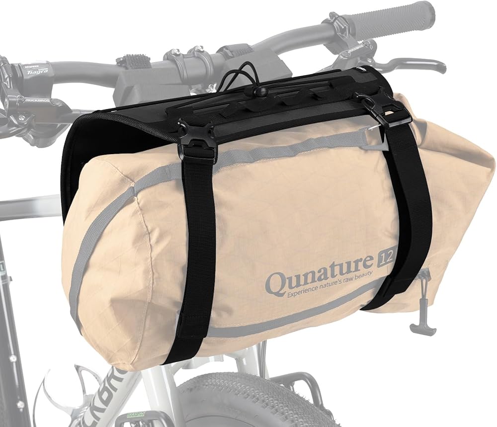 QUNATURE bike handlebar harness for bikepacking with flexible mounting options and tons of storage space is specially designed for gravel bikes, but also can be used on other types of bikes, such as folding bike, scooter, commute city bike, mountain bike, road bike, kids bike, e-bike, etc. It offers flexible storage spaces for bike handlebar bags and it is a good substitute of top tube bike bags. The design is solid and durable, with elastic straps and loops for bike packing accessories. It comes in two color options. Versatile for cycling and outdoor adventures. It is used as handlebar bag mount to accommodate various items, such as dry bags, handlebar bike bags, bike bar bags, bike handlebar bags, cradle bags, bike front fork bags, tents, and trekking poles, etc.