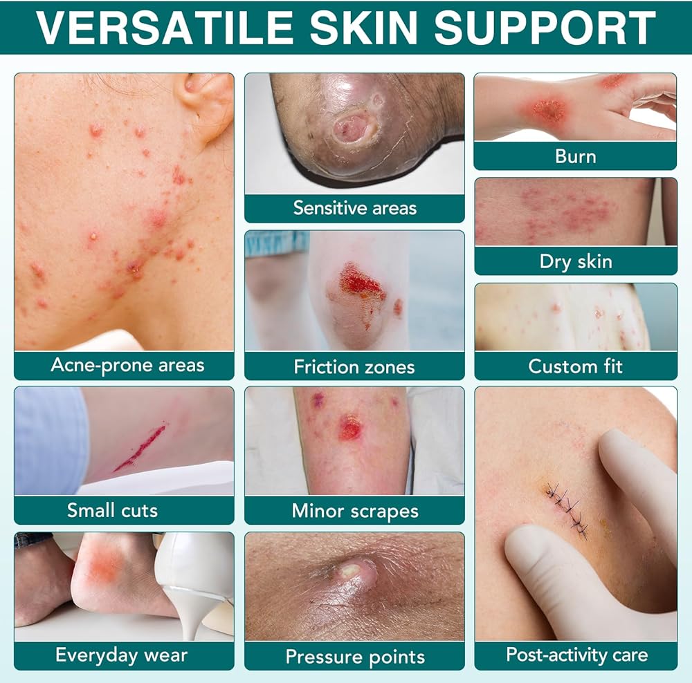 Essential Waterproof Bandages: Hydrocolloid particles absorb wound fluid to create a protective gel. The adaptive gel layer maintains ideal moisture levels to prevent skin irritation and support faster tissue repair. Also allowing you to swim and bathe without fear of infection.