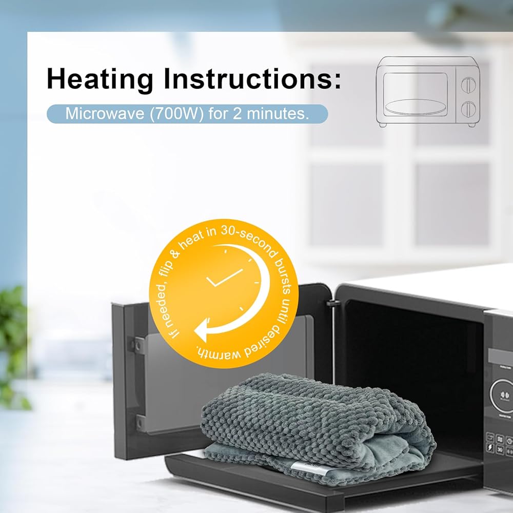 Cordless Convenience Anytime, Anywhere: Enjoy the freedom of a non electric heating pad that works without outlets or cords. Simply warm this microwavable heating pad in the microwave for a quick heat session at home, in the office, or while traveling. As a safe and portable alternative to electric blankets, this rice pack heating pad is your go-to for drug-free, natural comfort.