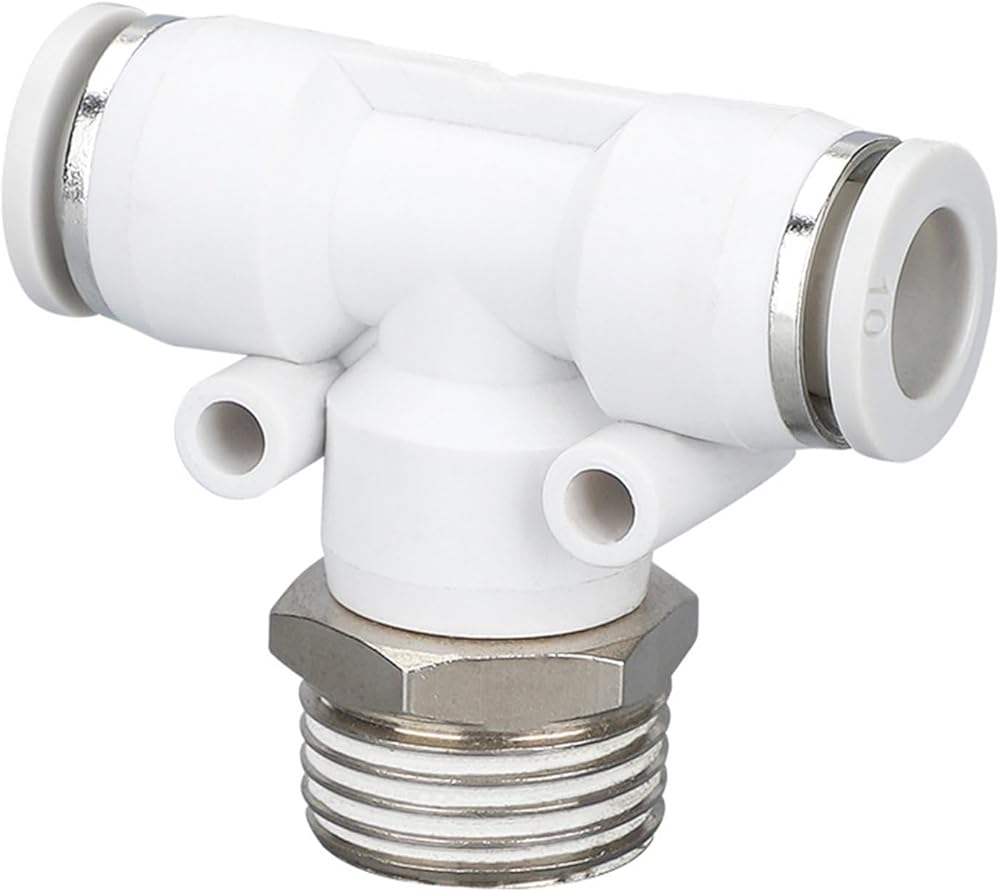 PB8-02 Tee Positive Thread Pneumatic Quick Joint Black And White Metal Air Pipe Insertion Components 1Pcs