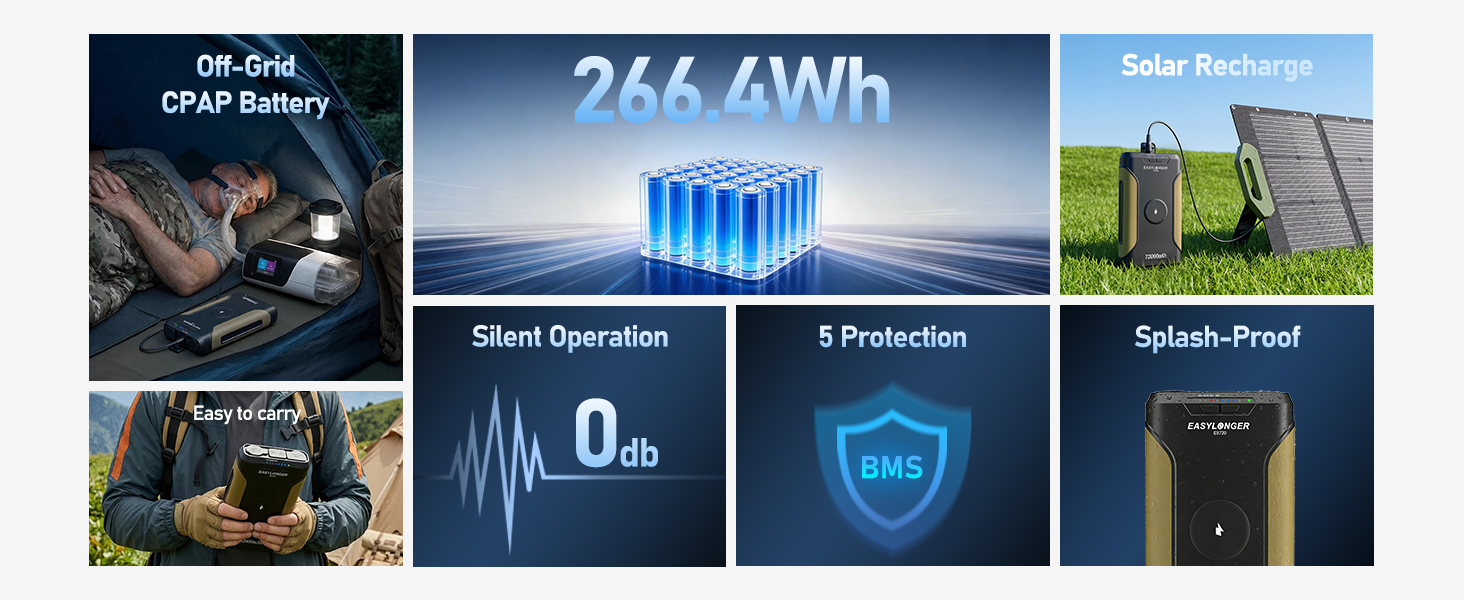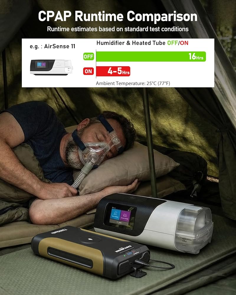FSA/HSA Eligible Off-Grid CPAP Battery: This 266.4Wh battery backup is designed specifically for CPAP users and qualifies for FSA/HSA reimbursement. It comes with four DC cables and is compatible with ResMed S9, AirSense 10, AirCurve 10, AirMini, AirSense 11, AirCurve 11, Luna G3 (heated tube not supported), Philips Dreamstation, and Dreamstation 2
