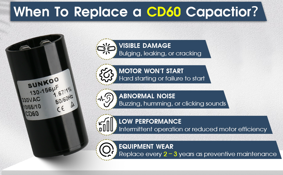 【Durable & Stable Performance】This CD60 motor start capacitor provides strong starting torque to help motors start quickly and smoothly. Ideal for fixing issues like hard starting, humming, or failure to start, restoring reliable motor operation.