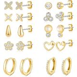 KesaPlan Stud Earrings for Women 14K Gold Plated Hypoallergenic Hoop Earrings Set Small Studs Hoop Huggie Earring Multiple Piercing Star Heart Ball Cubic Zirconia Studs Stacks Trendy for Women Men