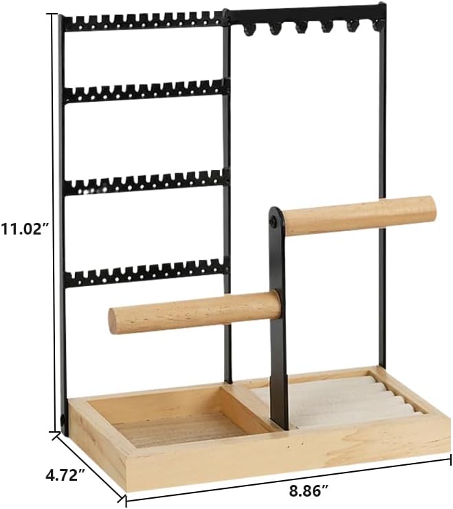 Elegant Design: The jewelry rack and tray of the product are made of metal and soft wood, Using frosted technology. with elegant design and simply style are easy to intergrated into your home decor.