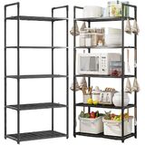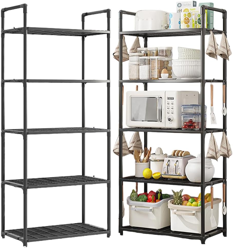 Sturdy and Stable with Guaranteed Load Capacity: The storage rack features a robust overall frame, with each shelf supporting approximately 20 lbs. Components connect securely. It safely holds heavier items like microwaves and cookware, providing stable support in kitchens, garages, and other settings for worry-free storage.