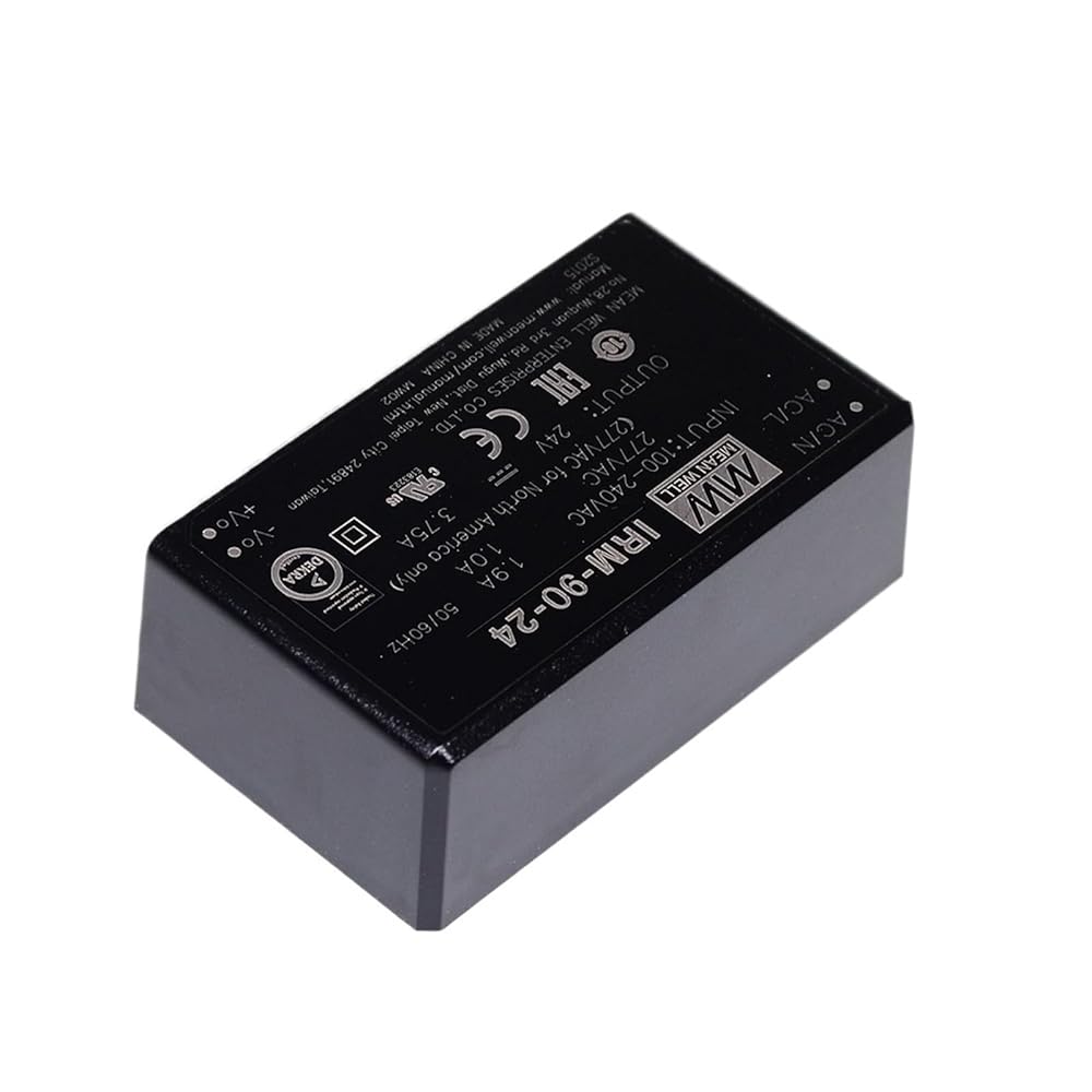 IRM-90 is a 90W miniature (87*52*29.5mm) AC-DC PCB-mount module type power supply, ready to be soldered onto the PCB boards of various kinds of electronic instruments or industrial automation equipments. This product allows the universal input voltage range of 80~305VAC. The 94V-0 flame retardant plastic case and thefully-potted silicone enhance the heat dissipation and meet the anti-vibration demand up to 2~5G anti-vibration by model; moreover, it provides the fundamental resistance to dust and moisture.