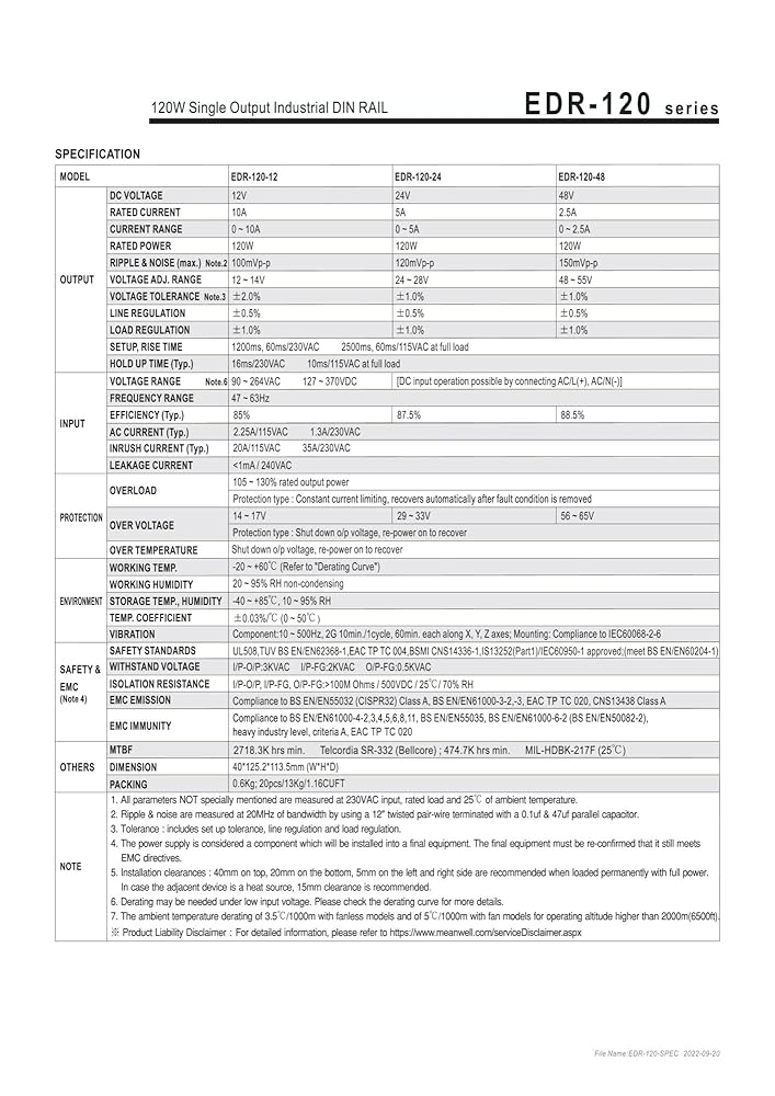 - EDR-120-48 120W Single Output Industrial DIN Rail EDR-120 48V 2.5A