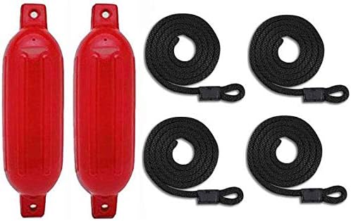 Mad Dog Products Fender Value Pack Keeps your boat well protected from scuffs and scrapes when docking. These premium utility fenders reduce hull rub and chafing, while molded-in eyelets withstand the constant pull of everyday use. A clever rubber football needle valve allows easy inflation and long life, the fenders comes custom inflated to ideal pressure. The 6.5-by-23-inch (Width x Height) fenders are rated for boats in the 17-to-28-foot length range. The included 3/8 inch by 5 foot fender lines will ensure you have the correct lines for your fenders.