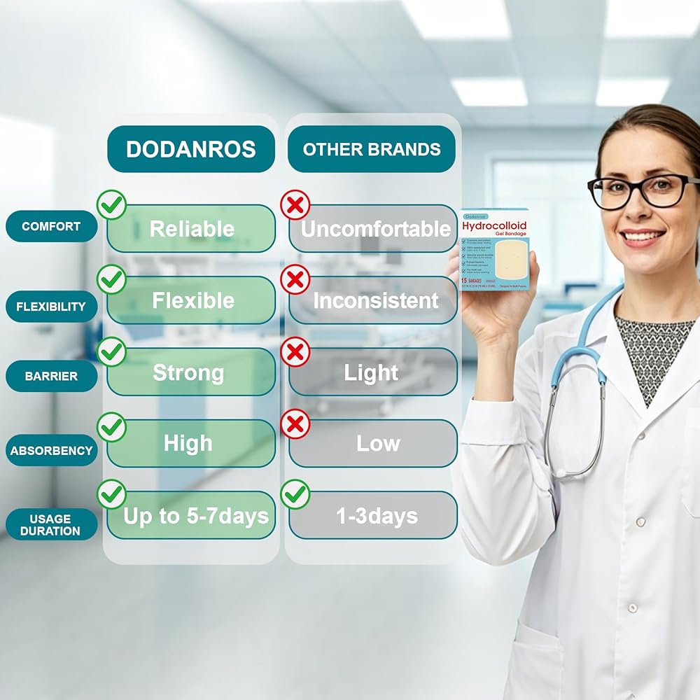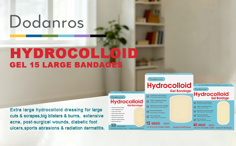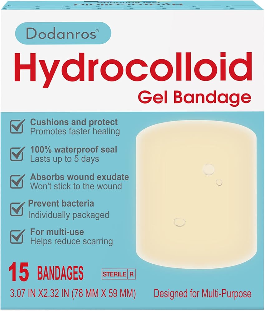 • Dodanros Advanced Fast Healing Large Hydrocolloid Gel Bandages, Adhesive Wound Care Pads, 3.07*2.32 in (15 Count)