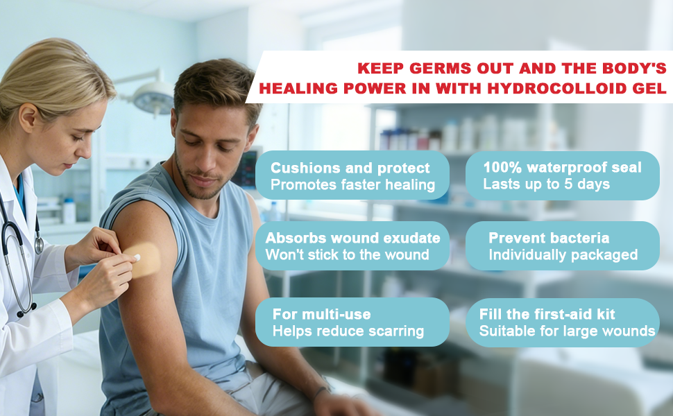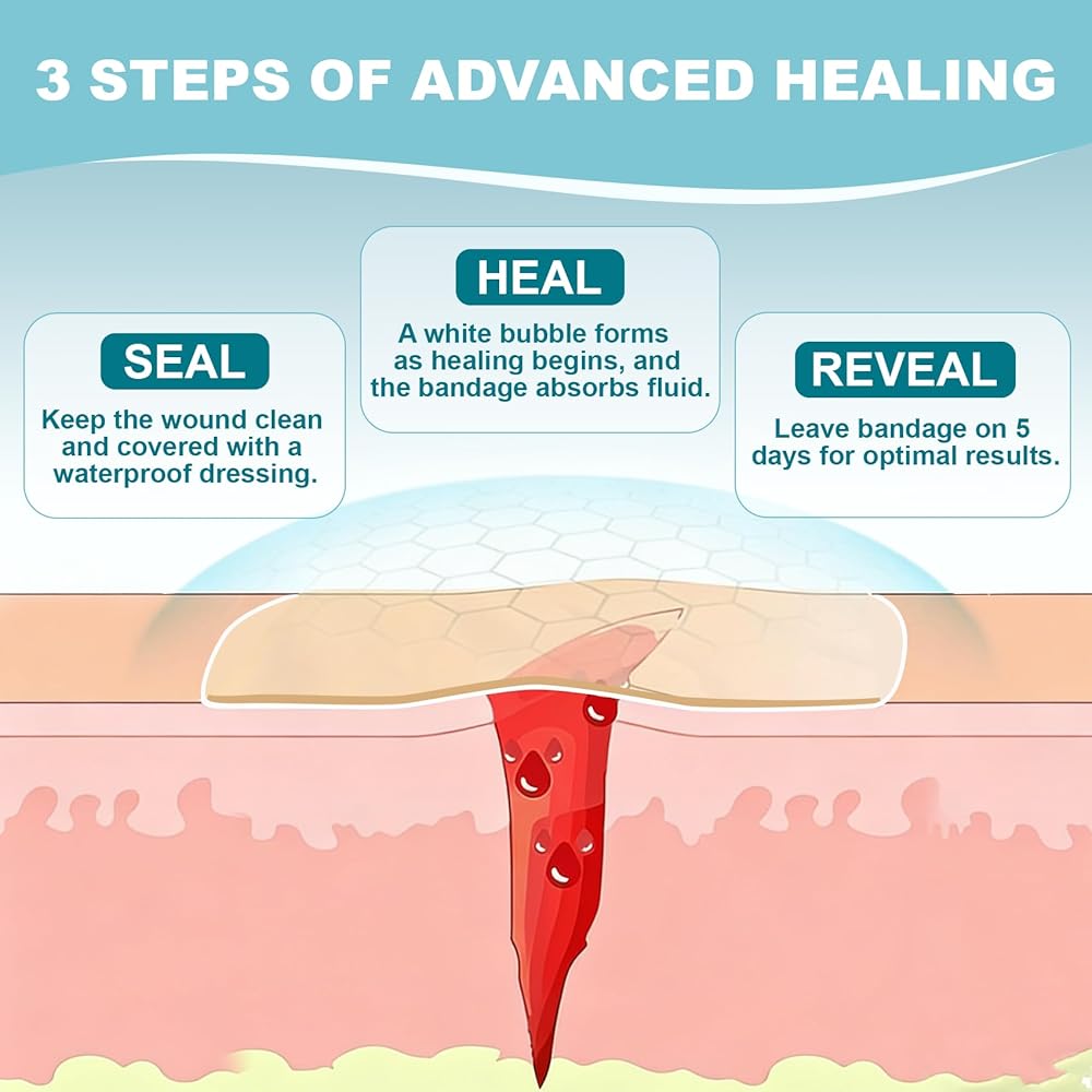 • Advanced healing Large hydrocolloid bandages for everyday wound care.Wear for 5 days for less scarring. Deliver less scarring and 60 percent better healing.