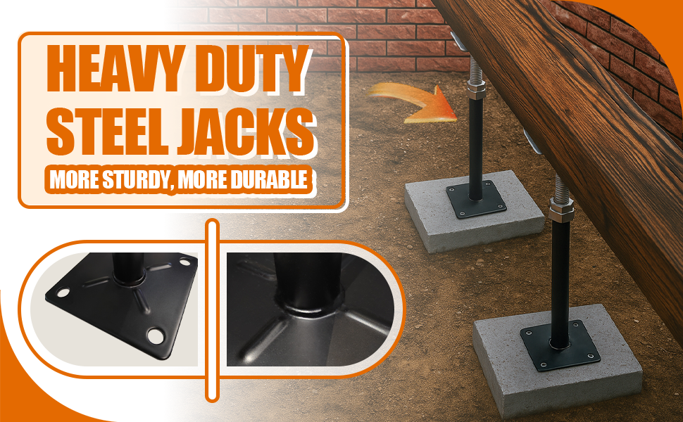 Versatile Applications: Use these floor jacks to stabilize crawl spaces, decks, porches, or roof trusses. Perfect for repairing old homes, reinforcing beams, or securing structures.