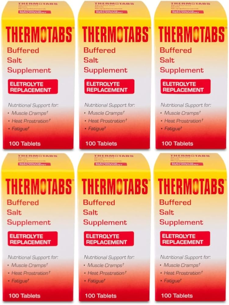 Thermotabs Buffered Salt Tablets are specially formulated to help replenish salt and electrolytes lost through heavy perspiration due to heat, exercise, or other strenuous activity. Each buffered tablet provides sodium and chloride with a small amount of potassium to help maintain electrolyte balance and support proper muscle function. The buffered formulation is designed to be gentle on the stomach compared to plain salt tablets. Thermotabs are ideal for individuals exposed to hot environments, athletes, and workers who experience excessive sweating and need to replace essential electrolytes to prevent fatigue, muscle cramps, or heat-related conditions.