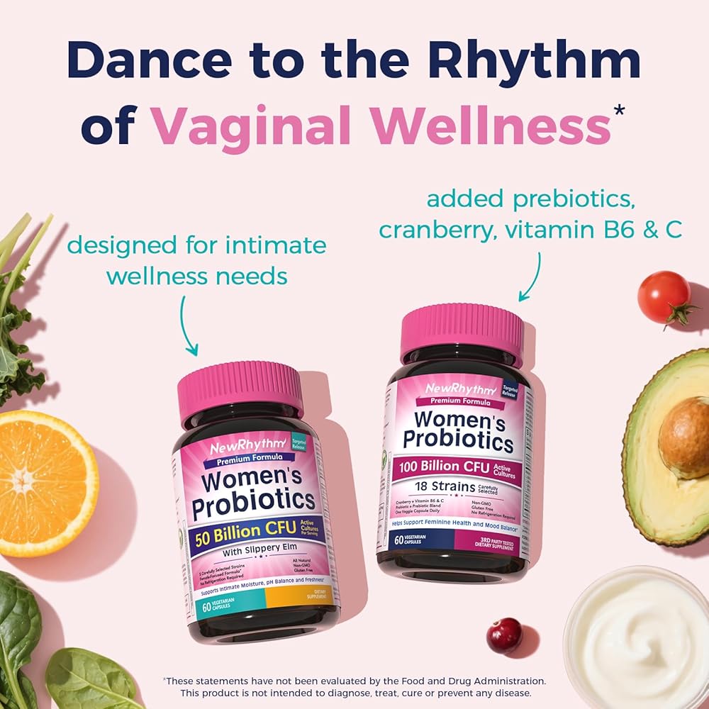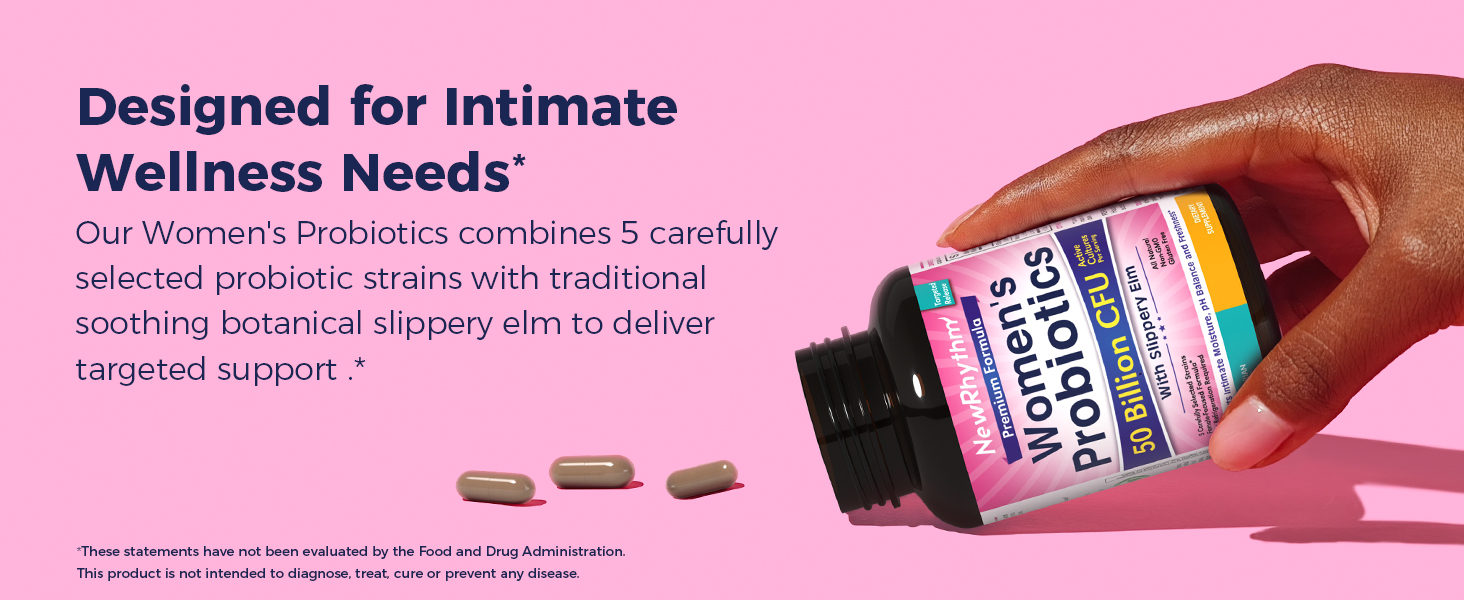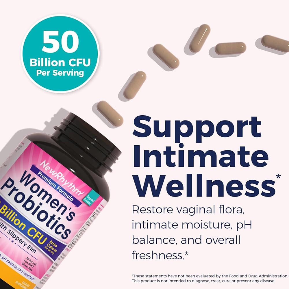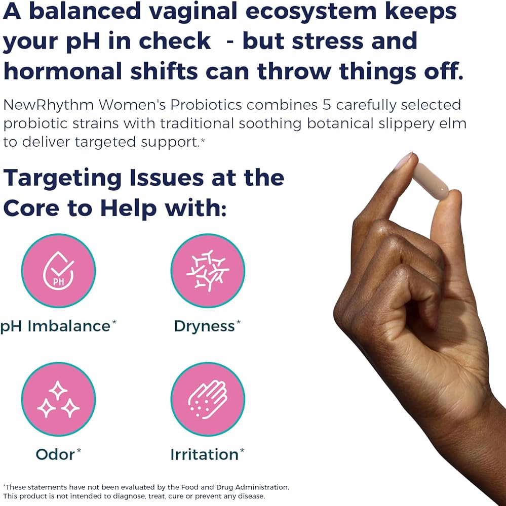 2-In-1 Daily Feminine Support*: NewRhythm Slippery Elm+ Women's Probiotics combines 5 carefully selected probiotic strains with traditional soothing botanical slippery elm to deliver targeted support for your vaginal flora, intimate moisture, pH balance, and overall freshness.* Ideal for women seeking a natural, accessible way to complement intimate wellness daily care routine.*
