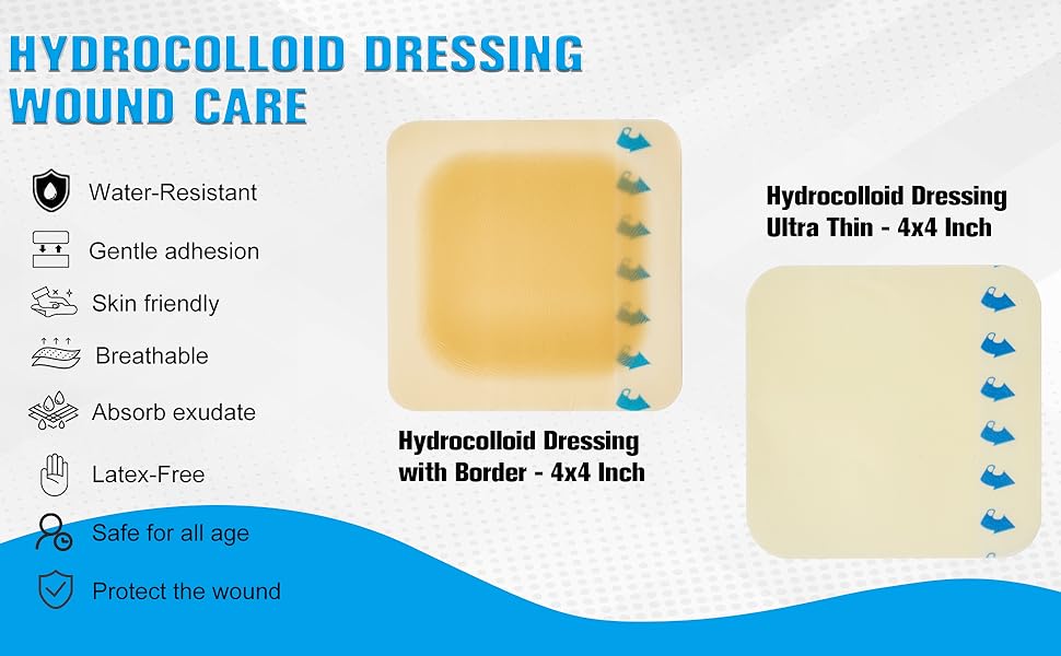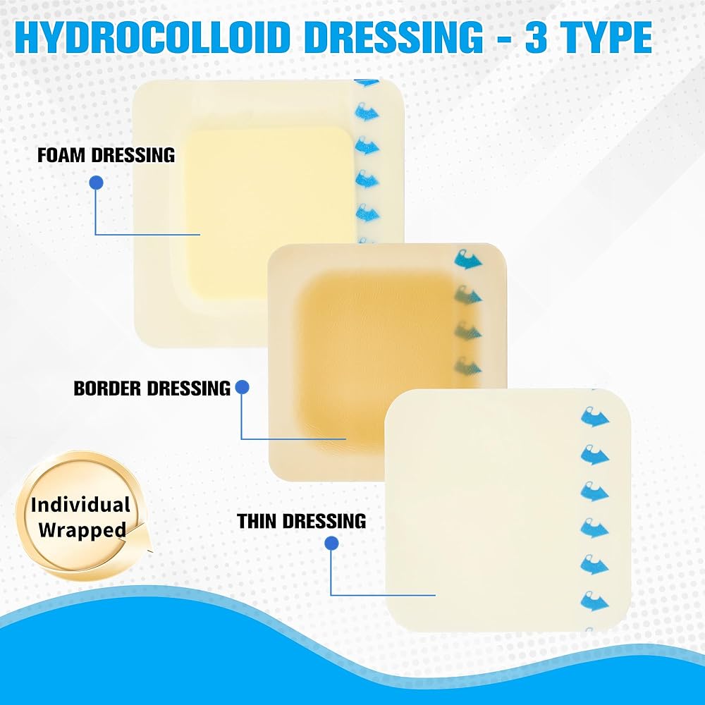 Hydrocolloid Wound Dressing: 4x4 inches Hydrocolloid wound dressing; Ultra thin 5 Pack each box - Individual Wrapped Island Wound Dressings; Free-cut design for the wound