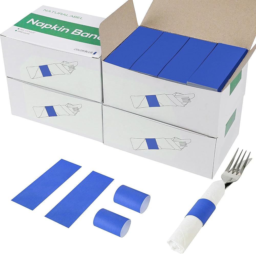 NATURALABEL Bulk Pack of 8,000, Self-Adhesive Napkin Bands for Small Business, Restaurants, Events - 4 Boxes, 2000 per Box (Blue)