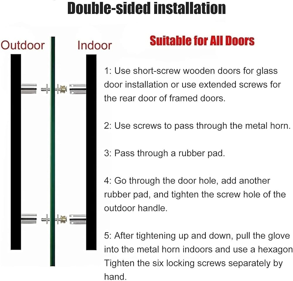 With back-to-back installation, the handle set includes all the necessary mounting hardware. For double doors, two sets are required. You can choose from multiple lengths (60cm to 120cm) and hole distances, allowing you to customize the handle to perfectly fit your door. If you need a custom size or screw options for thicker doors, simply let us know, and we'll provide the correct components.