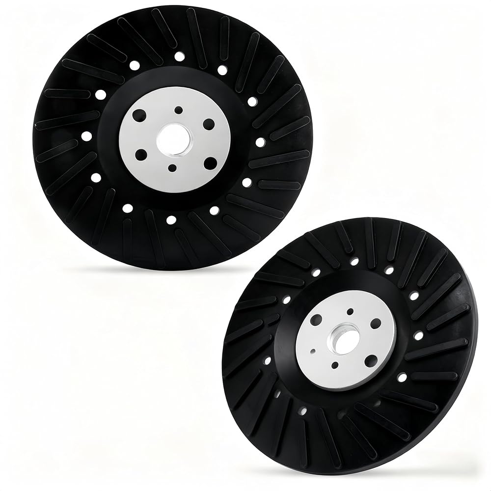 Enhance your angle grinder's performance with these high-quality backing pads designed specifically for BHA resin fiber discs. This 2-piece set features a sturdy 5/8"-11 thread that ensures secure attachment to your grinder. With a 4.5-inch diameter, these backing pads from Raneped provide the perfect foundation for your sanding and finishing tasks. The robust construction supports even pressure distribution across the disc surface, helping you achieve consistent results. These backing pads are compatible with standard 4.5-inch resin fiber discs, making them versatile additions to your power tool accessories. Whether you're working on metal fabrication, surface preparation, or general material removal, these backing pads deliver the stability and support needed for efficient operation.