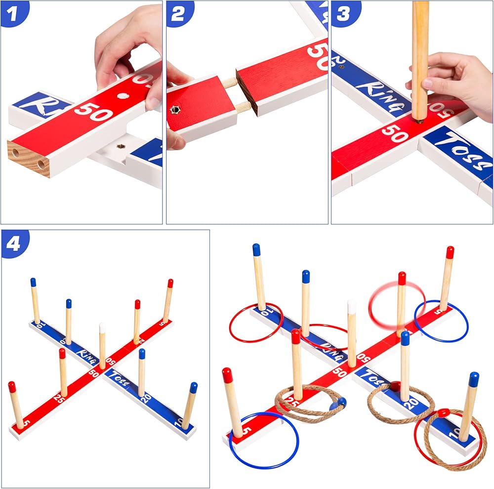 Party Game for Kids: With its easy setup and portable design, this ring toss game is perfect for taking to parties, picnics, camping trips, and more. It makes a great gift for kids, boys, girls, and families who enjoy outdoor games and activities.