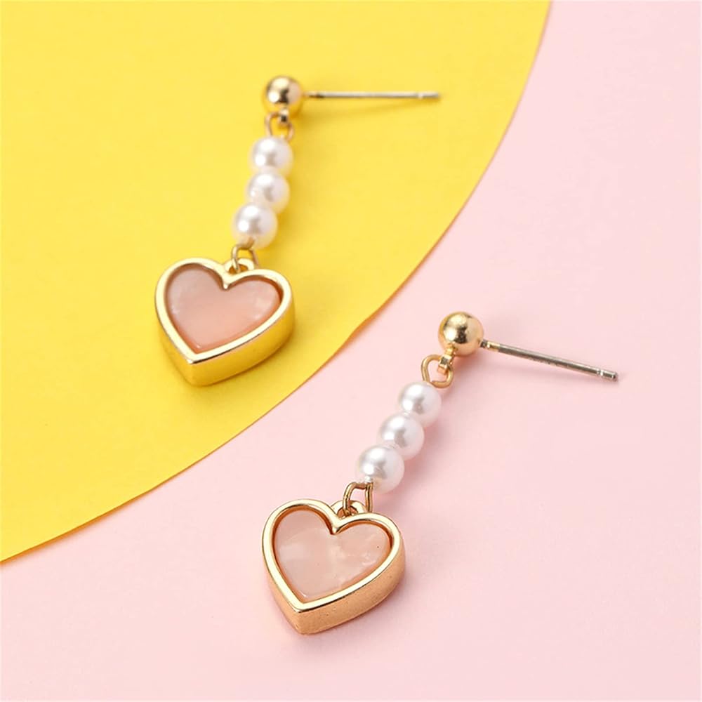 MALOYANVE Love Heart Long Tassel Dangle Earrings for Women Sweet Dainty Cute Pearl 925 Silver Needle Pink Heart Dangle Drop Hook Earrings Delicate Jewelry