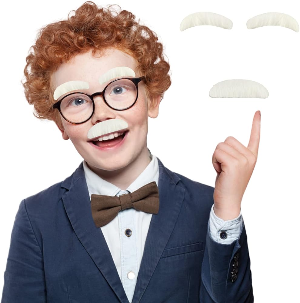 ⭐️【Stick on Mustache】: The old man moustache and eyebrows kids comes with adhesive. Peeling off the adhesive back and paste it to your face position, disguised as true beard, easy to use and also easy to take off.