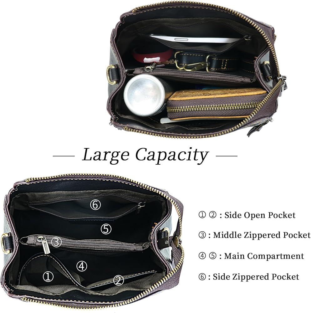 Interior: 1 x Main Compartment; 2 x Separation Pocket, 2 x Zippered Pockets. This crossbody bag keeps your wallets, keys, cellphone, make ups safety. Suit for cellphones like iPhone6 6 plus, iPhone7, 7 plus,iPhone8, 8 plus
