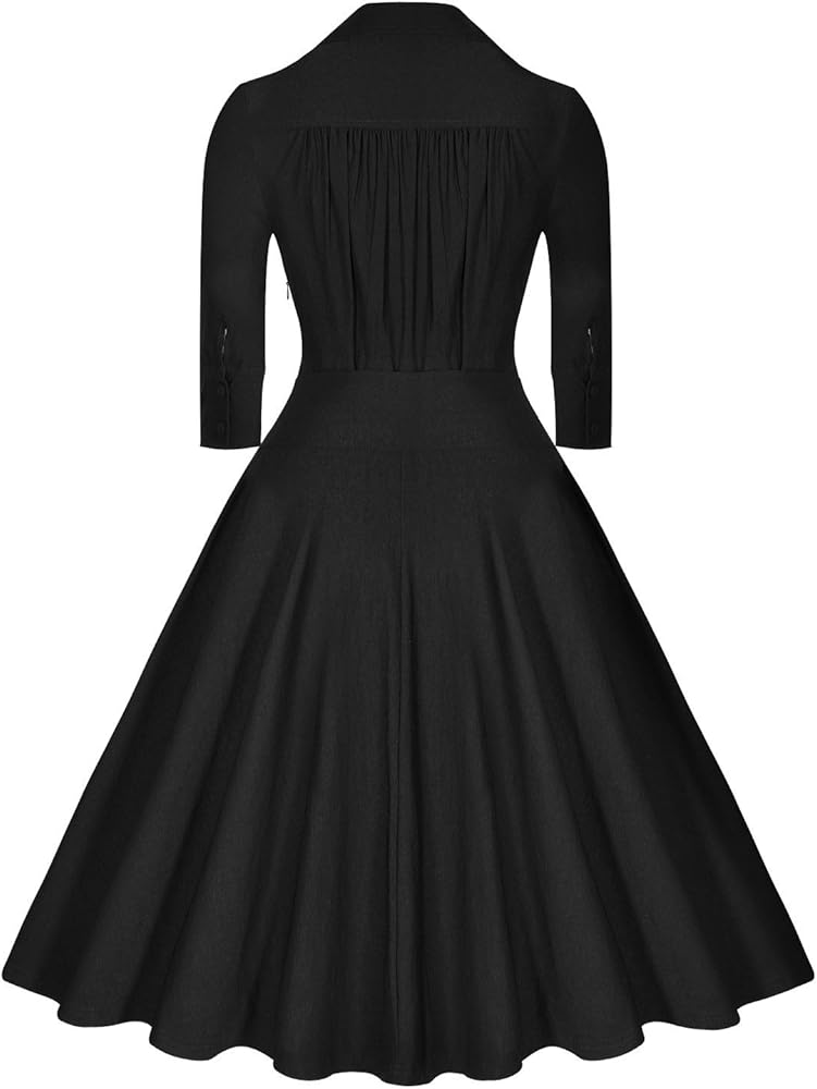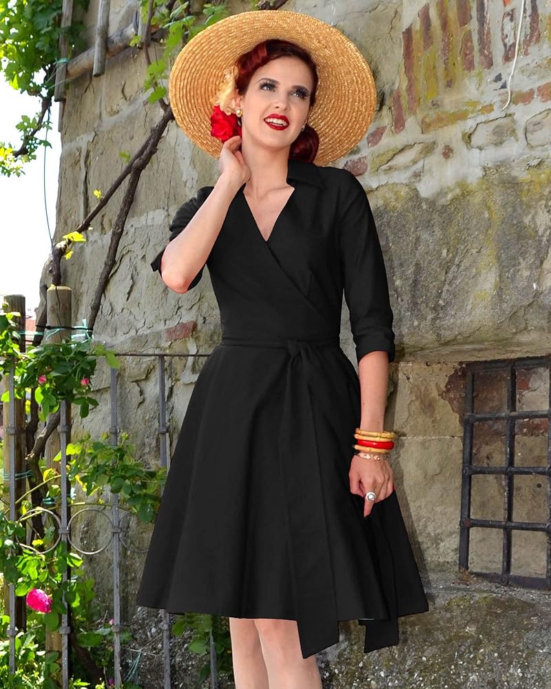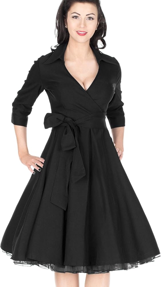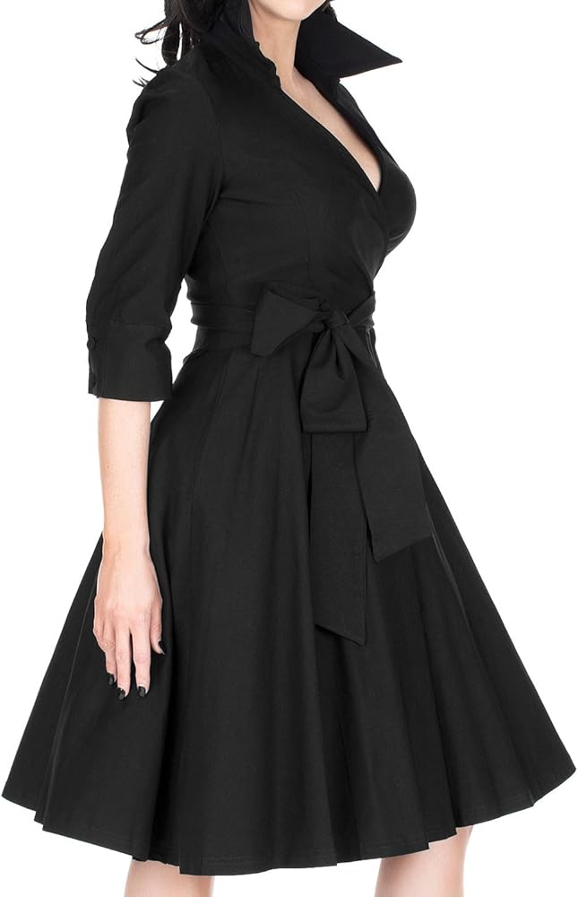 Miusol Women's Deep-V Neck Classical Bow Belt Vintage Casual Swing Dress